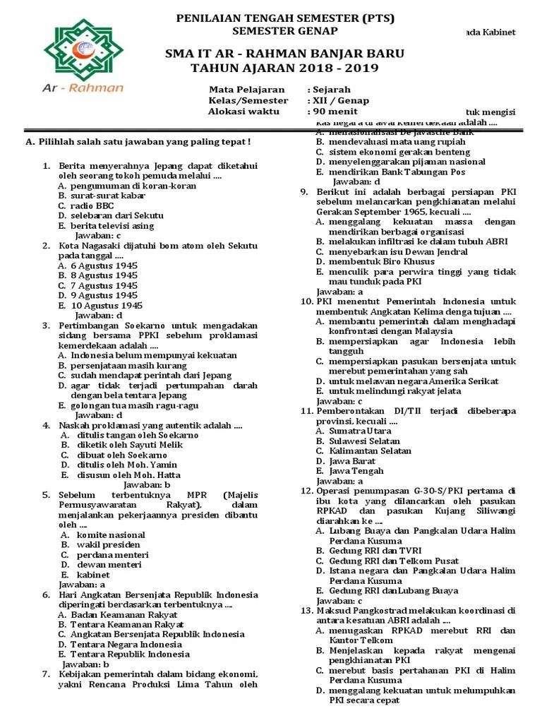 Soal penilaian tengah semester sejarah indonesia kelas 12 sma/smk merupakan soal uji kemampuan peserta didik dalam memahami materi yang di . Soal sejarah kelas xii bab 2 perkembangan iptek dalam era globalisasi lengkap dengan kunci jawaban dan pembahasannya. Ayo belajar soal uas sejarah kelas x xi xii semester 1 ganjil uas sejarah xi. Dimulai dari pertanyaan nomor 16, berikut dibawah ini soal sejarah wajib dan kunci jawaban untuk siswa kelas xii semester ganjil kurtilas edisi . Dimulai dari pertanyaan nomor 26, berikut dibawah ini soal pts sejarah indonesia kelas 12 semester 1 dilengkapi kunci jawaban.